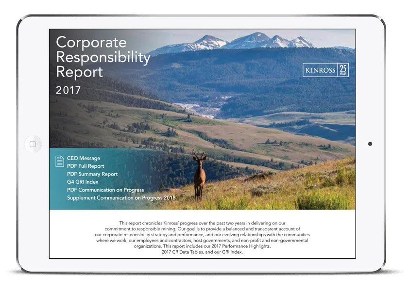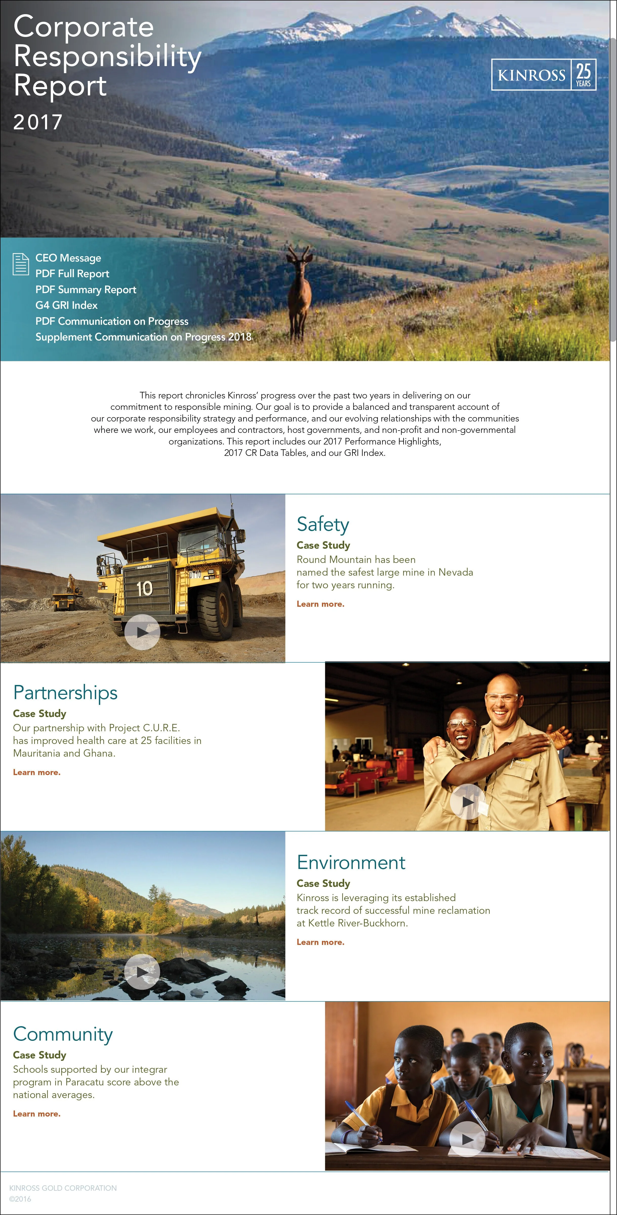 Corporate transition to reporting online involved creating microsite links where introductory and feature content are highlighted. Full reports in interactive Portable Document Formats are accessible to read online or download.